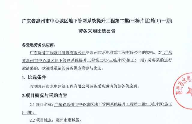 惠州市水電建筑工程有限公司成立于一九六四年四月,隸屬惠州市水務集團有限公司,是一家國有綜合性施工企業,主營水利水電工程、房屋建筑、市政工程等施工業務。公司擁有水利水電工程施工總承包一級、建筑工程施工總承包一級、市政公用工程施工總承包一級、公路工程施工總承包三級,公路路基、路面及建筑裝修裝飾專業承包二級,環保工程、機電安裝、河湖整治、輸變電工程專業承包三級等經營資質……